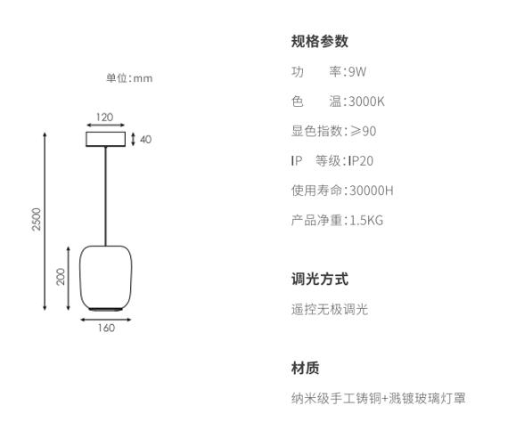 产品简介:手工吹制高硼硅玻璃,,,,圆润柔和;在内部的上路光透过玫瑰金色网格铸铜件投射出类似烛火的效果,,在空间里显得更加灵动,,,,外层玻璃采用溅镀金属质感,,,,自下而上渐消,,,,同时镜面镀层折射环境光线,,,使产品更加轻盈通透不压抑,,,下路光采用直下光,,,,满足1.5米圆桌面充足照明。。。。同时设计有防眩格栅,,,,桌面边缘的视线高度不会有直接光线照射到,,,体验舒适。。